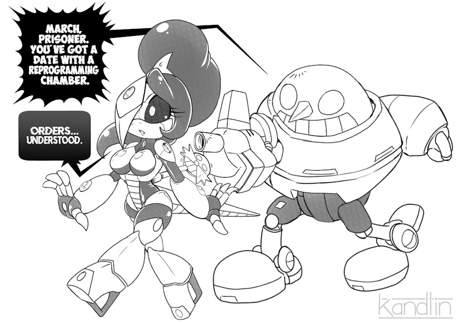 Sketch Stream Commission for ChaosCroc of his Natasha, all wound up and about top be reporgrammed.