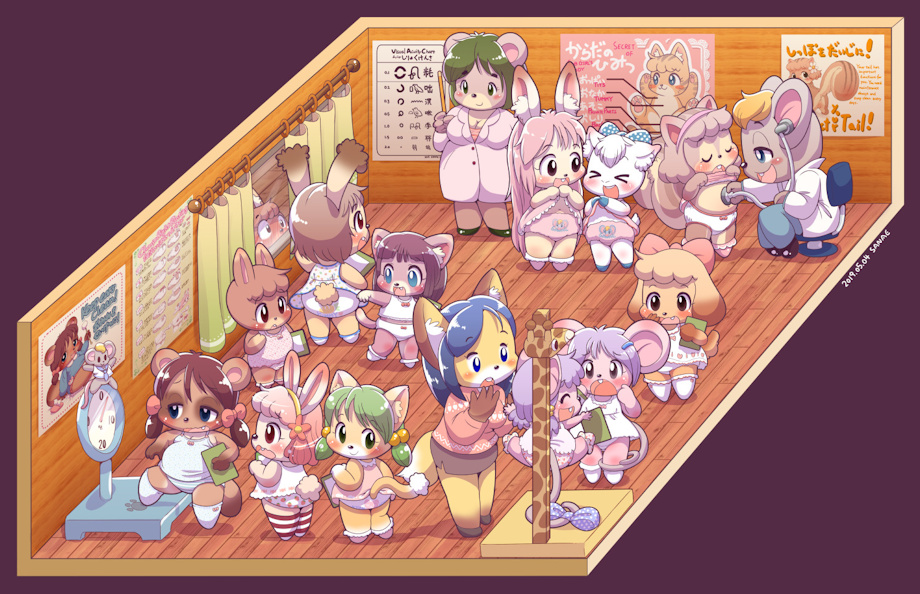 Excuse me, Mr. Sanae? We seem to have a problem. Last years physical exams were flawed. Apparently, all the girls weights were inconsistent with the rest of the test results. So, the school board has decided on a way to fix that: all the students have to be fully naked. No socks, no bows, no hair accessories, no tops, and most importantly, no panties. Also, some of the board are questioning your testing. You're supposed to have the stethoscope on a girl's pubic mound, right above her vagina, directly on her clit.
