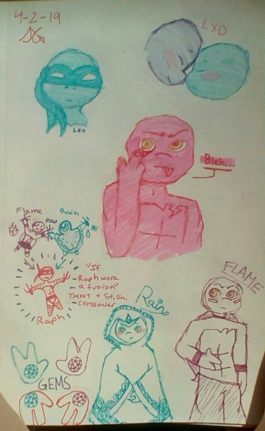 Pulling out oldish pictures to post! Meet flame and rain, Raphael's fusion! Thought I'd be kinda cool to do something like this even though I bet you someone already has. Oh well!