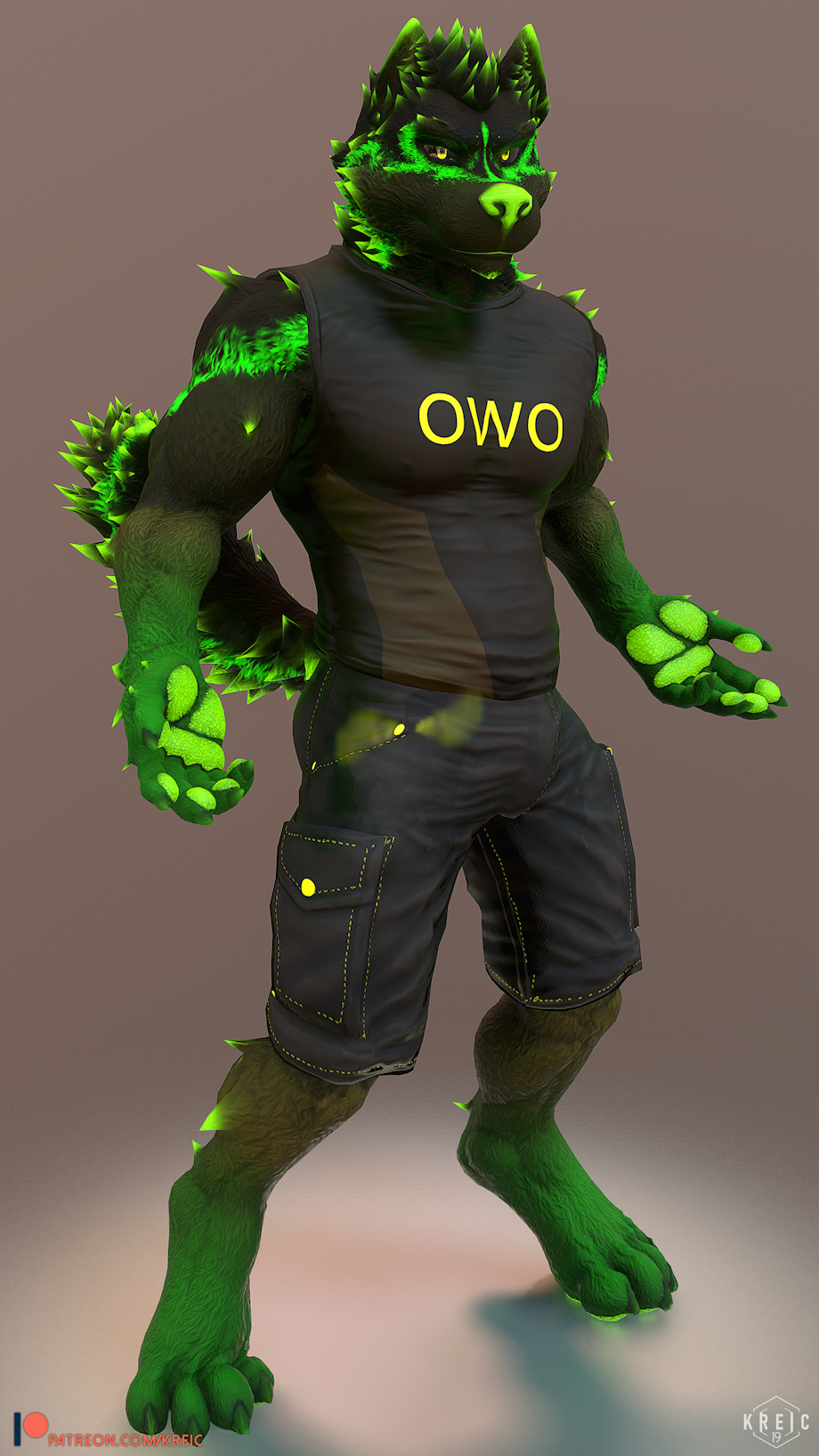 Here comes Radio, the most original furry in the whole world! He's unique, one of the smallest minorities in species, there's no one like him! he's a wolf. no, he's a husky... no, he's a wolfsky! and he's black...no, he's black and green... no, he's black and GLOWS in green! AND HAS BLACK SCLERAS cause there's a demon living inside of him! yeaaaah that'll teach them about originality. oh wait... *notices your bulge* OwO What's this?