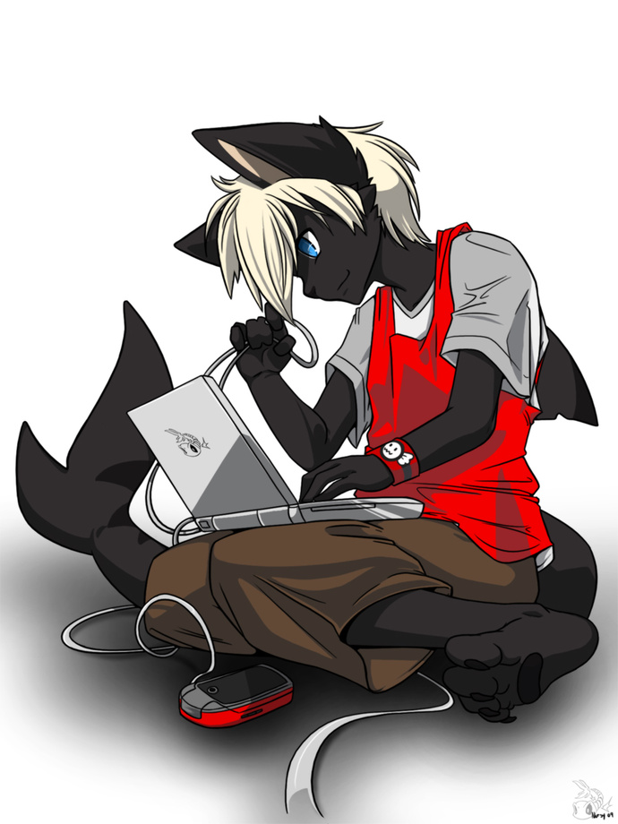 Maou is not actually a hacker. He likes toys. This one was meant to reflect what I did for work at the time, involving cell-phones and such.