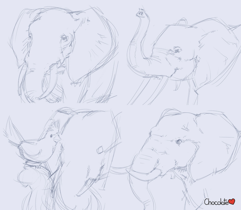 I recently took a commission that needed me to draw an elephant and a cardinal bird together. This was practice and concept work for the final piece.