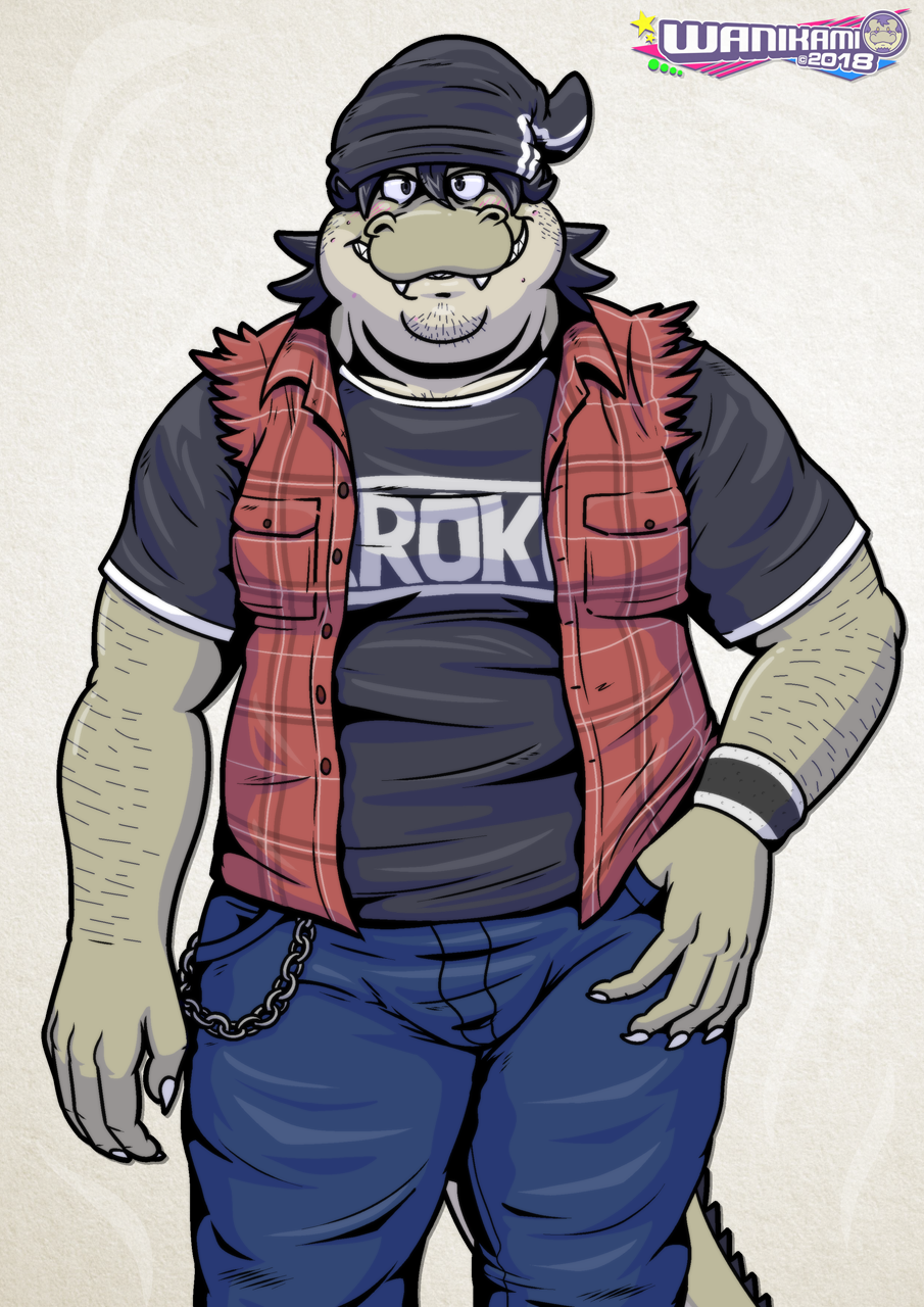 In the late 1990's, Butch Wanikami was an outgoing, but cynical teenager in high school. He had also been a slacker, not really focusing on his schoolwork and not taking his studies seriously. He'd rather listen to his metal music, go to the arcade, and hang out with his older cousin Sobek after school and on weekends. He did have a good relationship with his single father, Arsinoe, They shared many common interests, like watching sports games and working on automotive projects in the garage, Butch deeply respected and admired his old man, and as the years went on, considered him to be like a dudebro who he was comfy with and could easily talk to about anything, including coming out as being bisexual. Arsinoe later persuaded his son to join the varsity high school football team. which led to Butch becoming more responsible, improving his grades and getting a scholarship to attend college. Indeed, Butch developed to become a proud, exceptional krokodyle, thanks to his loving, supportive dad, and he's become more awesome during his time at the university.