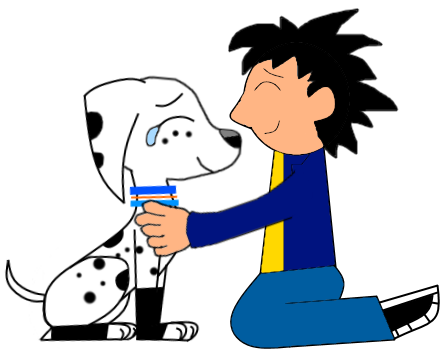 Here, my OC Danny Hitachi (in his human form) is hugging Dolly from 101 Dalmatian Street.