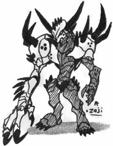 Zaji is a manifestation created from the essence of many Horrors who were killed by the Makai Knights bearing the title of Garo. Because of his origins, driven by the Horror essence that composes his being, Zaji exists to kill Golden Knights with extreme prejudice. Among his abilities is manipulation of time and space, using it to create a clone of himself. Using a broken stone face from a sphinx-based Horror statue to gain physical form, Zaji challenges Kouga to a fight to the death. Once his identity is revealed during the fight, Garo damages the statue's restored face to destroy the Horror Gate that enables Zaji to exist. Though defeated, Zaji points out that his kind will kill Kouga and his successors in time.