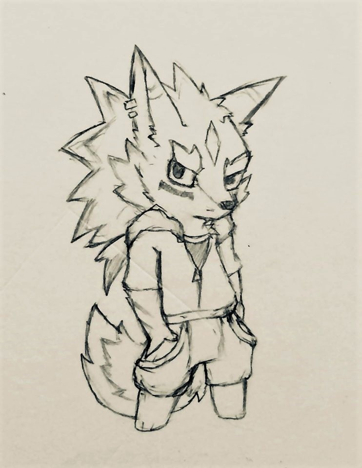 aww he's cute ^_^I dont know his name but he looks like a cross between star fox and Sonic. I like it. Great job. :)