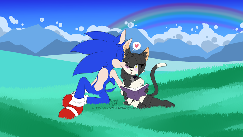 A friend asked me to draw their oc getting a little peck from Sonic~ It was fun to do~