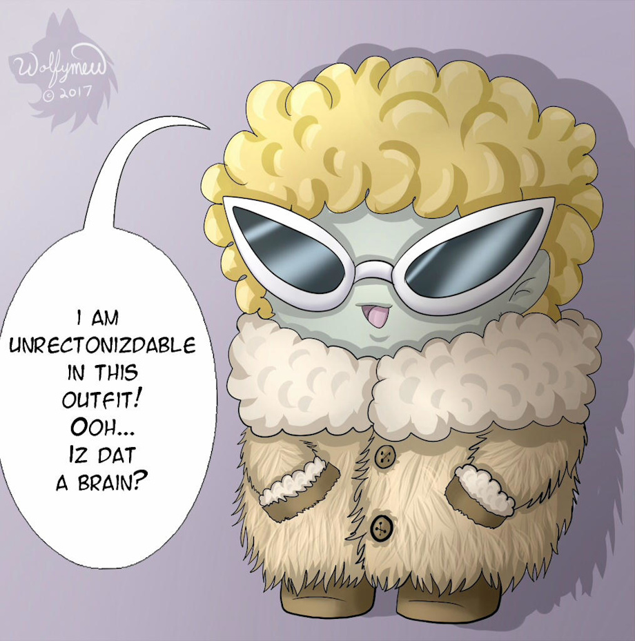 My zombaby haz poofy coat and wig. He poofs like his mama now! owo