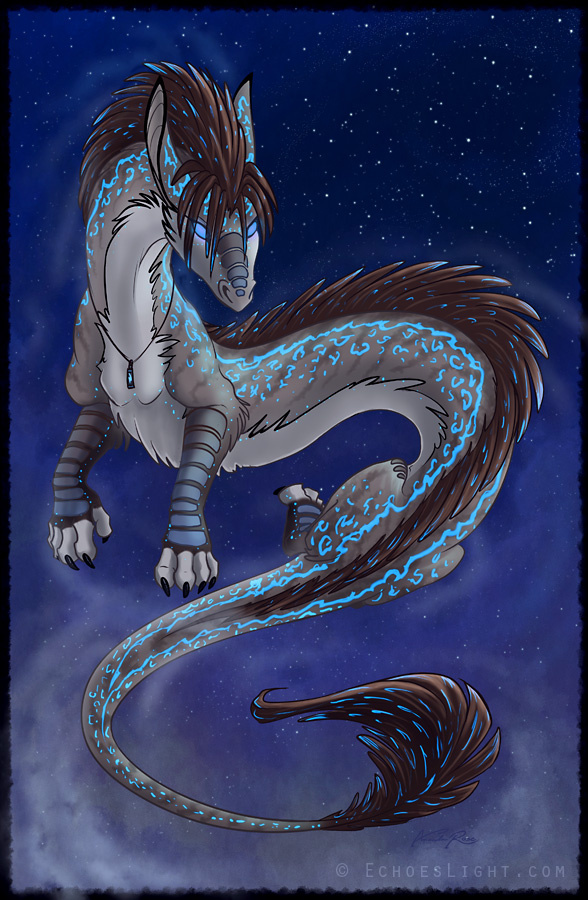 Whenever you feel lost or down, she will come to comfort or carry you to the stars. Rabbit soft fur with a warm, matching purr call. A chocolate trinket attracts her best. This dragoness calms your fears to be in peace and sleep unburdened rest.