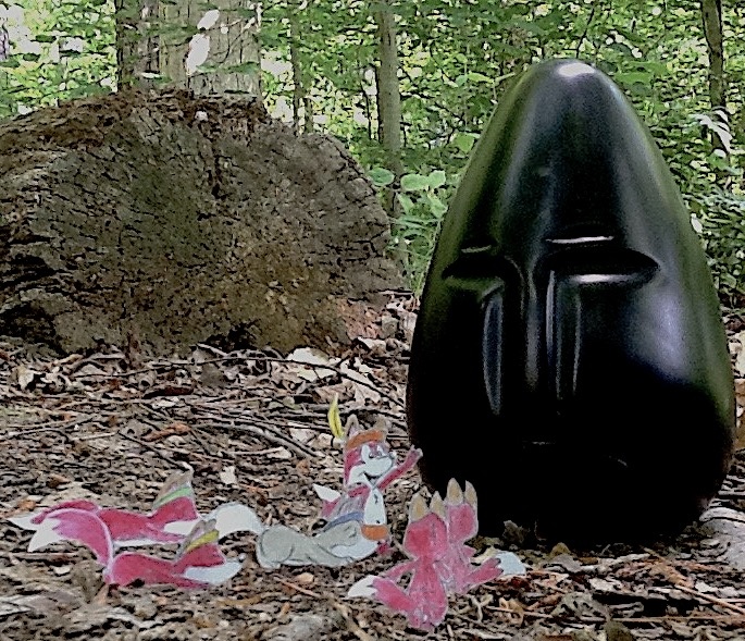 The foxes were deep in their worship, save for the cubs (far right). They were playing a game resembling tag---I guess the head is boring to them.