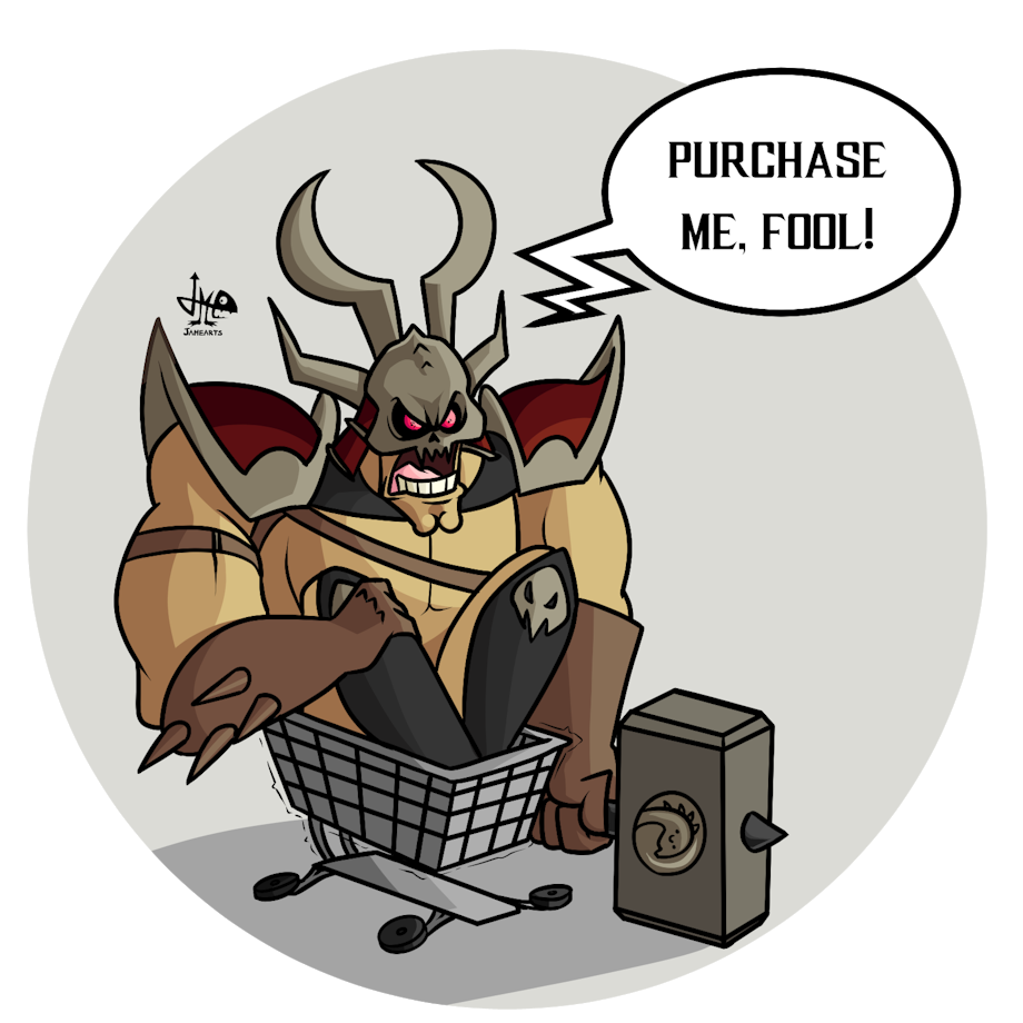 I was convinced by a pal at his discord server to draw Shao Kahn on a shopping cart asking the player to buy him.