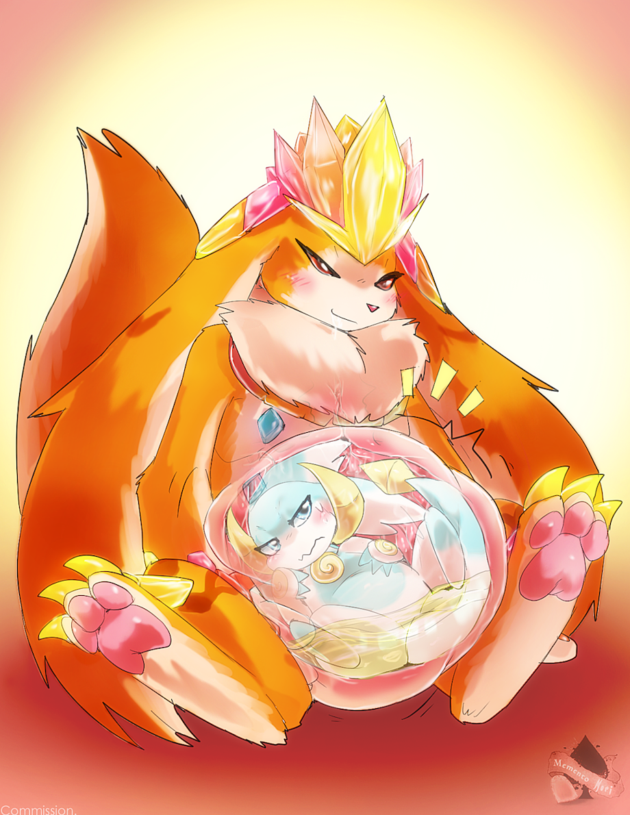It seems a dragon tamer has lost to a wild carbuknuckle, and the hungry creature is enjoying the spoils of its victory. Poor Syrup doesn't seem too excited about his new home though, quite embarrassed to end up in such a predicament.