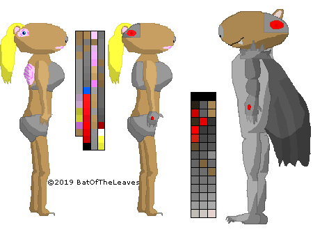 I improved her sprite, and figured I'd show the most notable lady of that faction next to the most notable man, their leader. I decided to show next to each their palette.