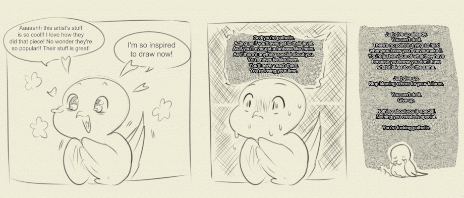 Ditto right here too, I've been drawing for 9 years now and I didn't get past the "average" artist's level of audience, I can't make money out of it, and I can't learn something new cause I spent too much time on trying to draw and design stuff for it to be ignored, I'm not trying to out-victim you though, or belittle your suffering, I'm really sorry if it came out that way, you're super likeable, and a great artist, and I hope you succeed The only advice I can try to give is that sometimes you have to step waaaaay out of your comfort zone, despite the doubts or problems you have, to achieve a small thing, that just might be what you need to snowball it towards success, and when you succeed you wouldn't even realize it until way later, just be patient and tenacious I love you and I wish I could do more <3