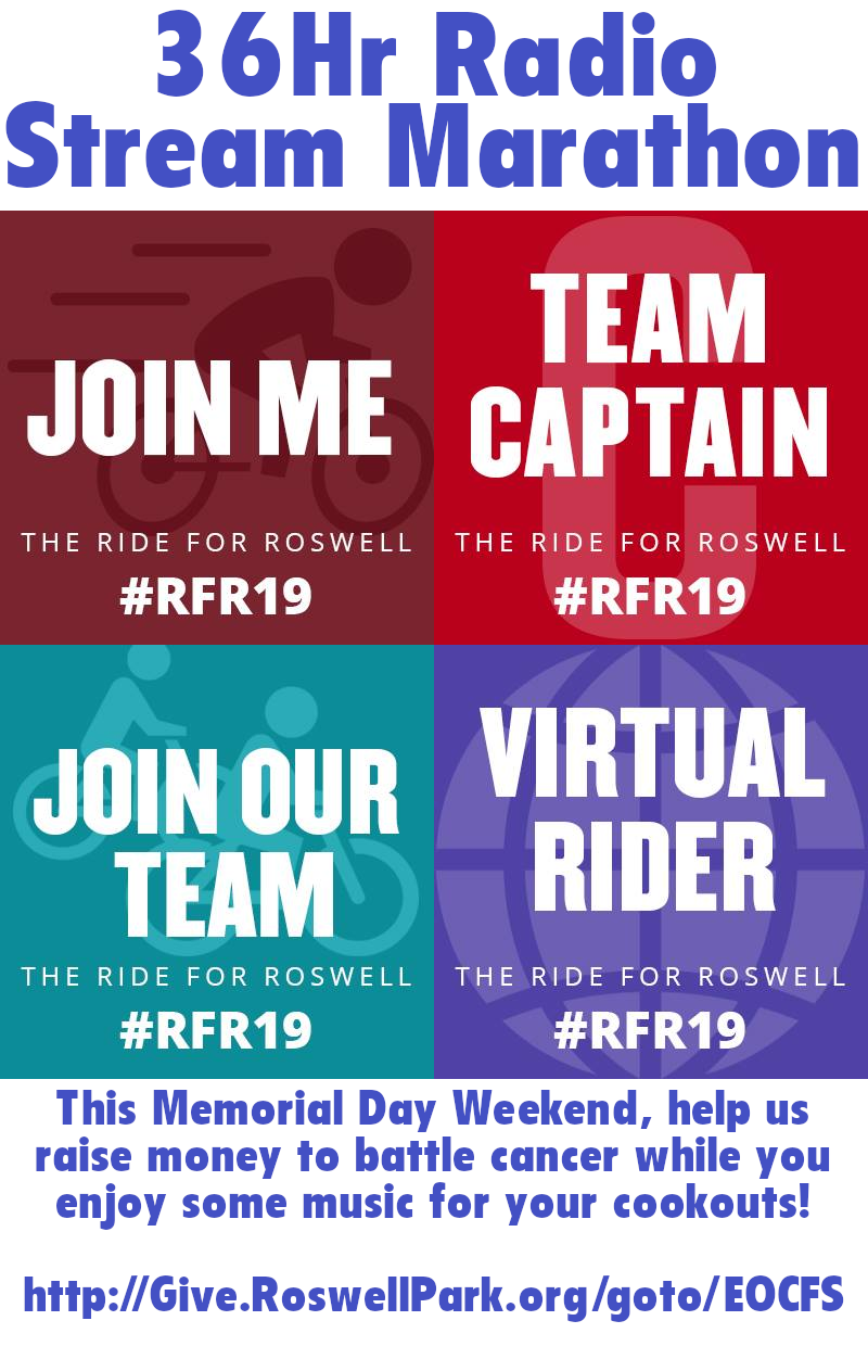 My 36Hr Charity Radio Stream for the "Ride for Roswell" is ON THE AIR! Tune in if you need music for your BBQ this weekend... And consider donating to the cause to fight cancer Full listening / donating details are at http://Give.RoswellPark.org/goto/EOCFS #R4R36Hr