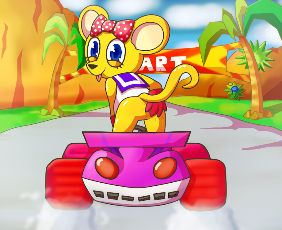 Pipsy taunts her opponents as she's about to cross the finish line.