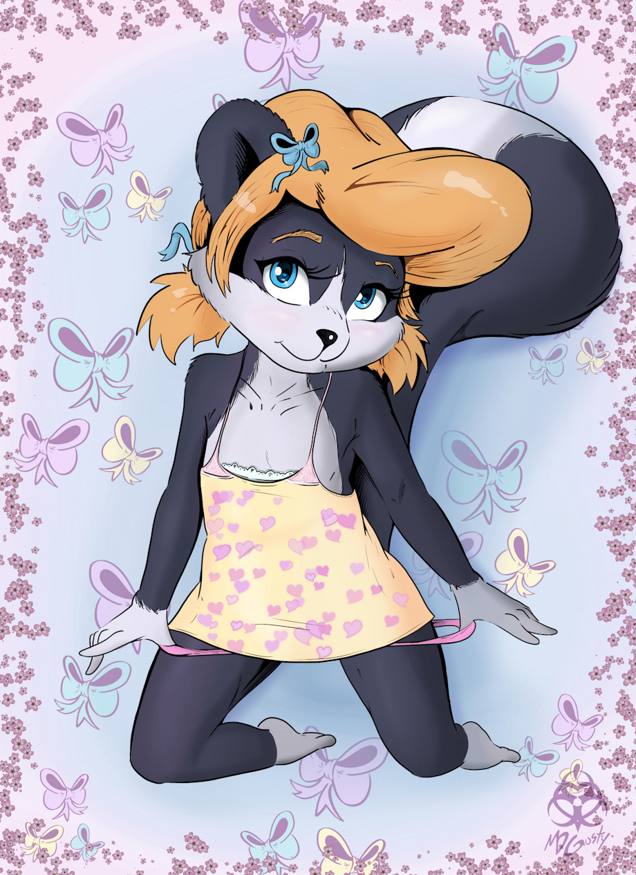 She can slide that adorable little skunk butt right to me.