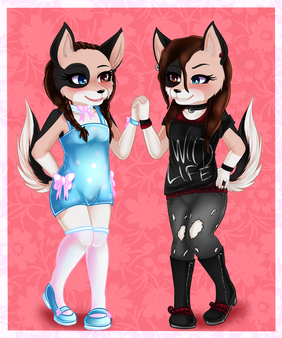 aaand here is the commission I've worked on for the past few days! it took so long cause I had to draw these puppers in different clothes the other 3 different outfits (of which 2 are nsfw) can be found on my patreon - https://www.patreon.com/KuroNekoKimi