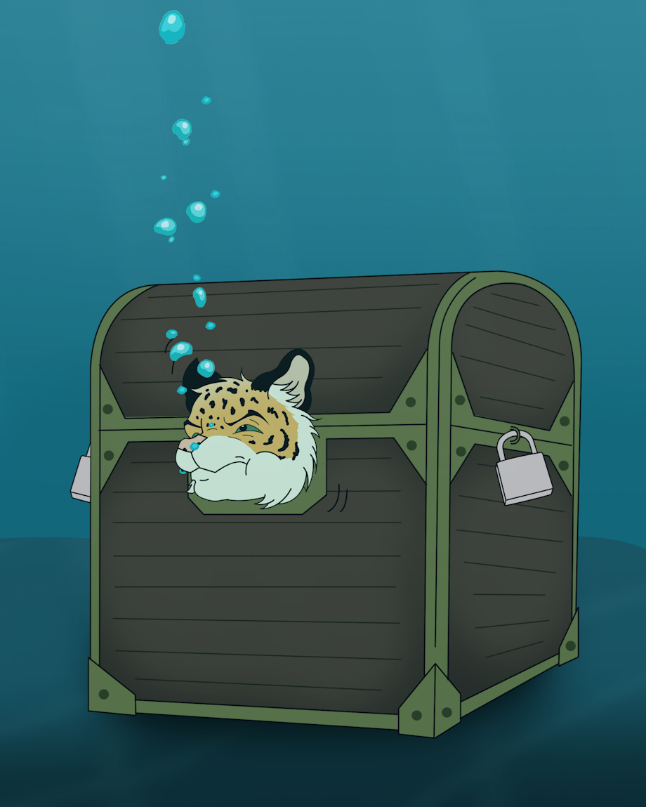 Mankee fought against them, but more thugs appeared and eventually apprehended him. A male Jaquar then approached Mankee and whacked him in the head with a paddle, knocking him out cold. When Mankee awoke, he saw he was on the deck of the boat. He felt that his body was restrained when he tries to move, then looked at the wall of the ship and saw his reflection. Mankee reacted, for he was trapped in the treasure chest he saw in the ware house. His head was popping out and his body was well restrained inside.