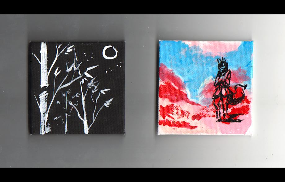 Unique miniature paintings: 2x2 Inches. Heavy Japanese influence for these pieces.