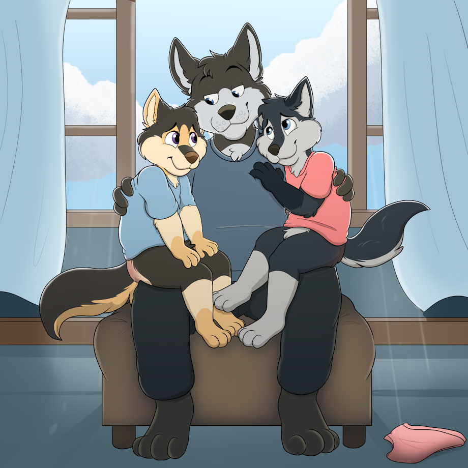 It was a sweltering hot summer day, the girls were done with school and Koda was relaxing in the other room cooling off after doing some yardwork. Amana and Alara looked outside their back door seeing the heat coming off the concrete. They really wanted to play outside and they didnt want to burn the bottoms of their feet. Alara holds a bright red ball in her hands whimpering softly because she wanted to play, then an idea popped into her head. "Hey Amy, lets play inside" her twin sister looks at her and shakes her head. "But daddy says we shouldnt play ball in the house" The playful pup nudges her sister on the shoulder. "We'll be careful. Come on lets play." Amana knowing better reluctantly agrees as they slowly pass the ball back and forth with their feet dodging around the furniture giggling as they chased after each other. Alara smiles and yells out to her sister. "Hey Amy, heads up!" She yells and kicks the ball but misses her sister as it collides with a lamp in their living room as it lays in a shattered mess on the floor. "Allie! You broke it." The pup yells back which makes Alara yell back. "Well, you shouldve caught it!." Then they heard a voice that made their tails shiver. "Girls! What was that? They start to panic. "Nothing daddy!" They hear footsteps coming from where Koda was resting. "That didnt sound like nothing." Koda walks into the room making sure his girls were ok seeing his little girls, the broken lamp, and the ball as he put things together and folded his arms. "One of you mind explaining to me why you played ball in the house when ive told you not to?" The girls nervously plays with their skirts looking at the floor knowing what was coming after breaking one of the house rules. Then Amana spoke up. "It was hot outside daddy." She then points to Alara and whines "But she wanted to play inside!" Alara tried to protest but i stopped her by holding up a finger which they knew meant to be quiet. "And did you stop her? No. I heard you both giggling and playing." He then knelt down to be eye level with them. "Amana, youre the oldest you should know better." He then turns to look at Alara and then back to Amana. "Since youre both in the wrong breaking house rules as well as a lamp youll both be getting a spanking." They whimper and try to protest knowing it wouldnt work. Koda walks over to his chair and motions Alara over. "Since you came up with the idea and broke the lamp youll be spanked first. Now over my knee young lady." She whimpers and does so. Koda gently positioned her over his knee before folding her skirt over her lower back exposing his white and pink panties before starting to pull them down. Alara tries to reach back and protest. "No daddy please! Please leave the panties on!" Koda grabs her arm keeping her from flailing. "No Ma'am, you know the punishment for breaking house rules. Now move your hand before i use my belt." She whimpers and nods before moving her arm as Koda resumes sliding her panties down to her knees and rubs her cute little butt. "Im doing this because I love you both and i want the both of you to grow up to be respectable young women." Koda then raised his hand and brought it down several times across Alara unprotected backside as she whimpered and cried begging for him to stop. A few minutes on the receiving end of a nice hard spanking Koda helps Alara off his lap and hugs her lovingly helping her out of her panties. "Fold them on the couch and go to the corner please." She sniffled rubbing her arm against her nose* "Y yes daddy." She does as shes told and goes to the corner as Koda looks over at Amana. "Come on baby. Dont make me come get you." She slowly walks over and bends over his knee as he repeats the same process with her like he did with her sister as she folded her skirt over her lower back revealing her pink oanties and pulls them down to her knees as well. "Amana, since youre the oldest and shouldve known better your spanking will be much longer than Alaras. Understood?" *she nodded her head* Yes daddy. *she lowered her head and accepted her punishment well as Koda spanked her for an additional ten minutes. Once it was done he stood her up and hugged her before calling Alara over. She rushed over as they both hugged Kodas neck blubbering and crying saying how sorry they were. Koda gently rubbed their backs and cleaned their faces letting them calm down before seating them on each of his knees. "I love you both very much. Daddy makes these rules to keep you safe. What if you wouldve gotten hurt?" They both nodded as Koda gently held them close as their warm bottoms rested on his knees. "We love you too daddy." The twins said happily before hugging their loving father.