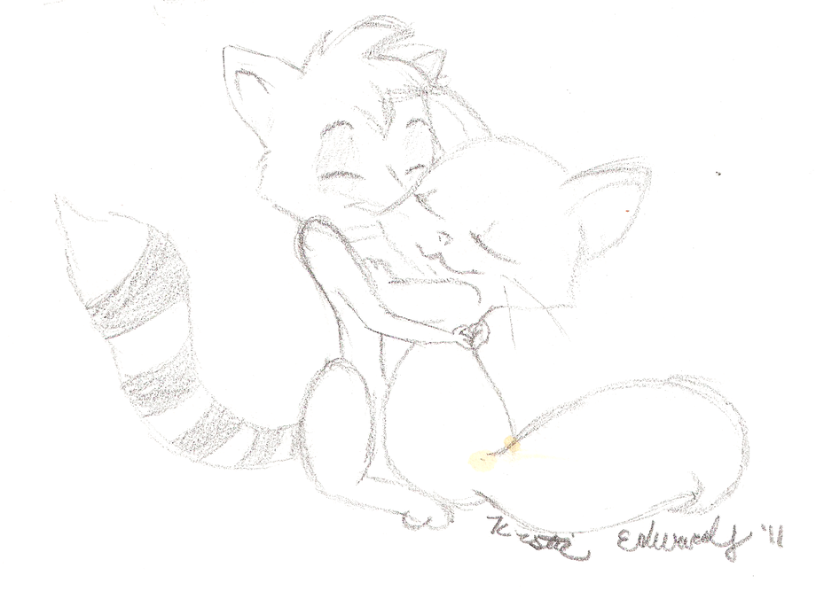 Rigby and Kit cuddling.
