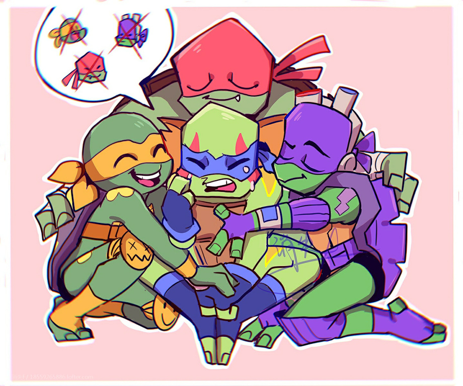 These are all so adorable! I love seeing them all cheer up Leo in the end, and Donnie x Mikey are ju