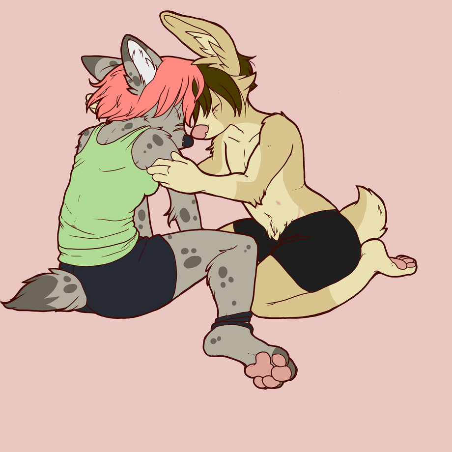 A drawing of my boyfriend and I. :) He's a corgi, I'm in my hyena character :D