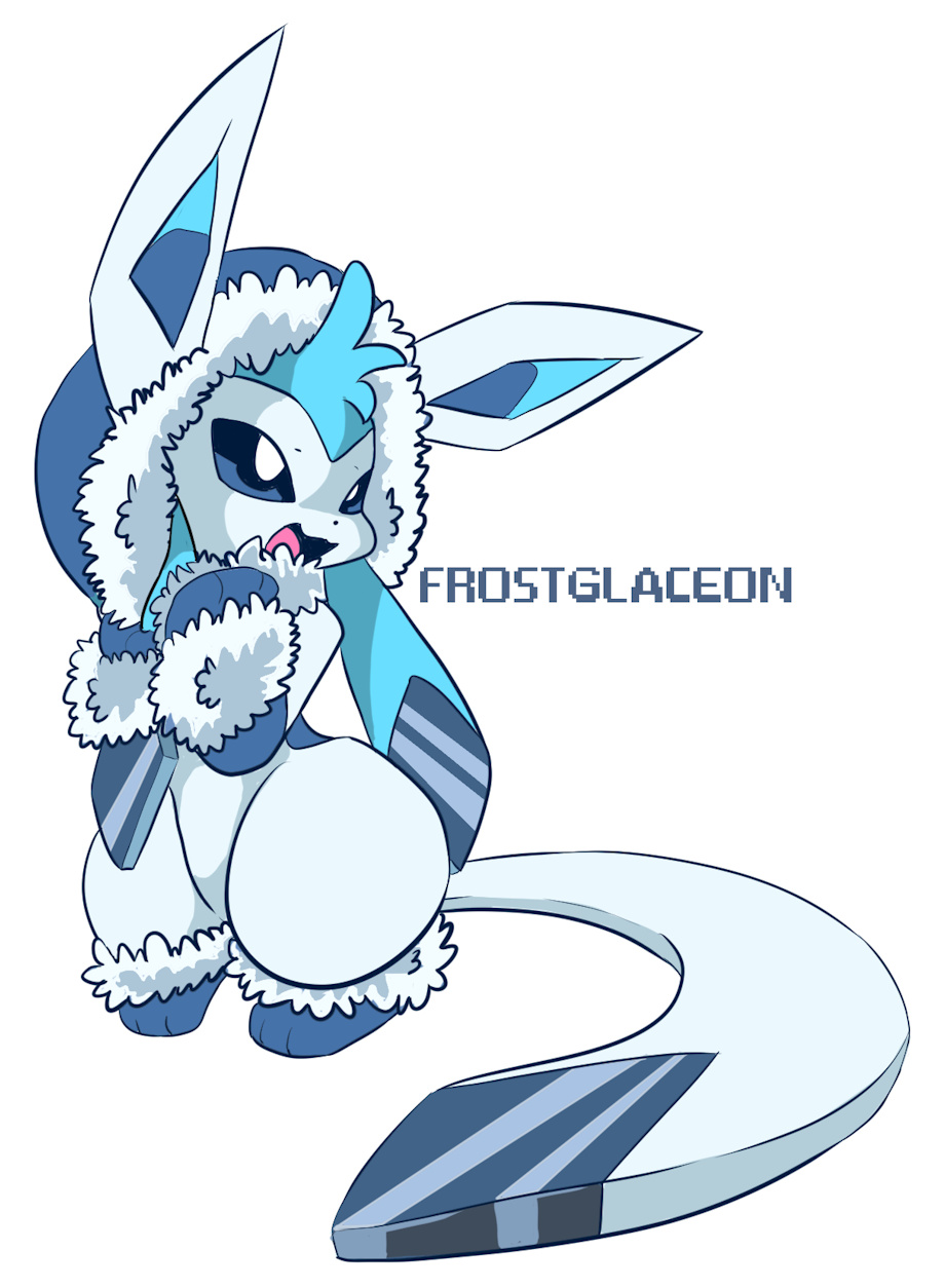 FrostGlaceon - During the evolution from Eevee to Frostglaceon the mane of eevee will transform into a natural parka with a functioning hood, as well as form a pair of foot and wrist furry cuffs for warmth, the side burns and tail of this pokemon are coated in a thick layer of ice chunks at the end which act as physical weapons in combat and enhance regular attacks with ice properties to raise the chance of dealing Freezing damage.