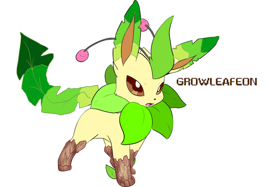 Growleafeon - during evolution the eevee's mane will transform into a bloomed leaf pod while the head will sprout stamen if the eevee is male, if female, the growleafeon will have a sex organ similar to a pistil in their genitals. These extra bodily growths allow Growleafeon to keep rare and exotic flower populations in check and alive if nearing extinction. During combat Growleafeon can coat it's paws and legs in tree bark similar to that of asian iron trees, further enhancing their attacks with plant and fighting damage.