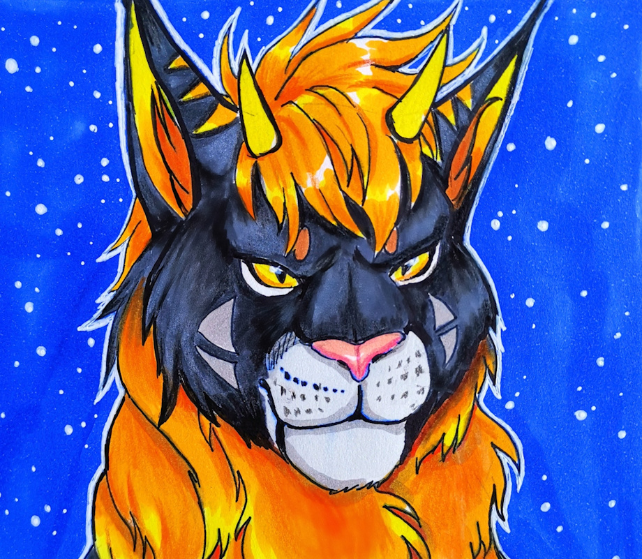 demon kitty boy in a more realistic/elder scrolls style. Trad art.