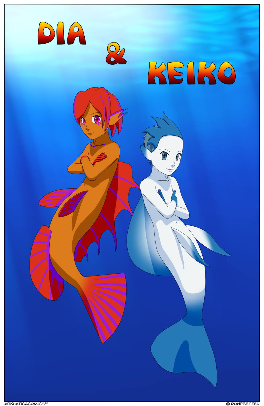 This is Dia and Keiko from my little comic book series, Arkuatica. There are 7 comics available to date. This is the third poster, from the comic, 'Rich In Omega 3'. Dia and Keiko are the most plain sailing of the bunch. I think that's all that needs to be said about these two. XD