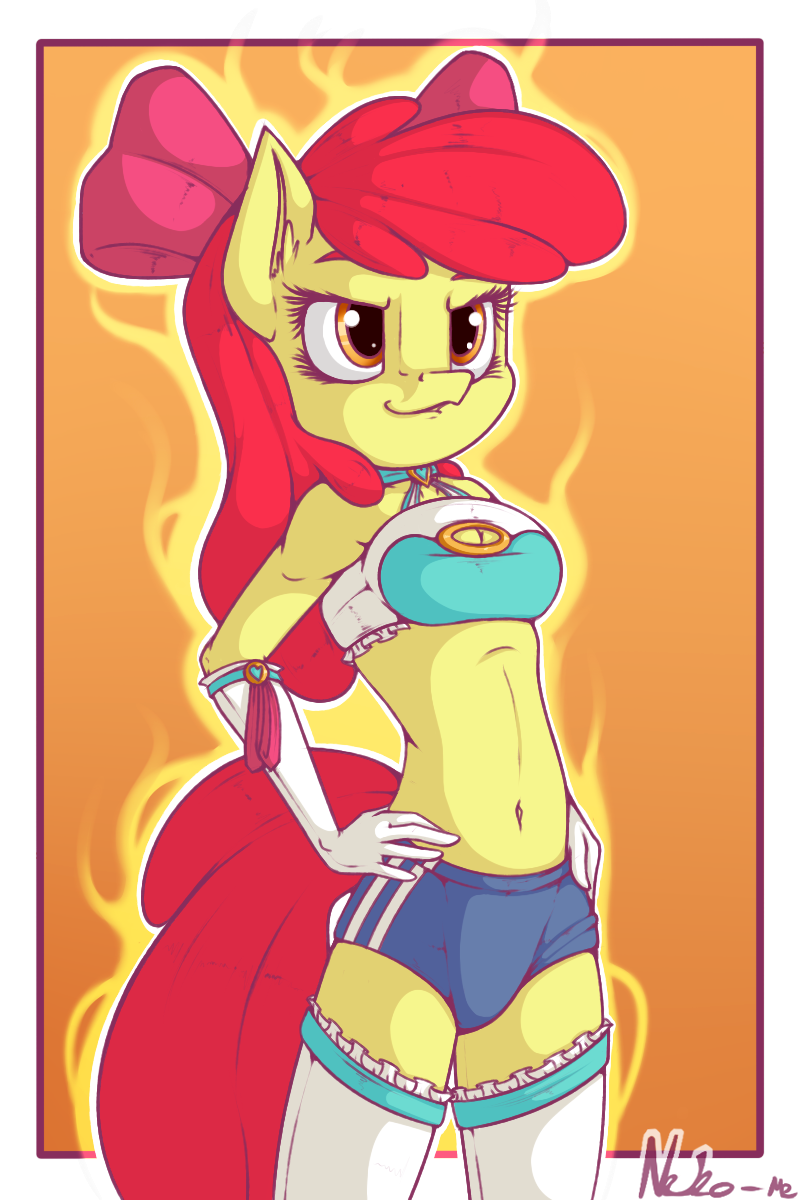 I like how each swimsuit represents them. Sweetie has the more childlike one Applebloom has the mor