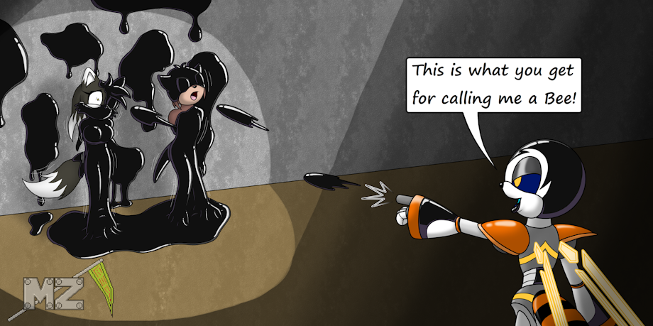 's oc Tai calling Doll a Bee when he a Wasp. To which Doll shoots them with his latex slime shot encasing them in tightening latex.