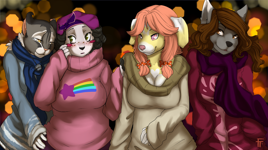 Original/Shaded version here Looks like the girls are taking Denise out for a fun little night of partying to ring in the holiday and have a few drinks to warm them up in the cool night air. But before Katida comes in to whisk Nana away, she manages to catch sight of indigosilverbell and jamesc 's Amanda cornering Denise as the two think about things that they might like to do to her later that night. The looks on their faces say enough, and Denise isn't exactly sure how she's wound up in this sort of situation or how she should react to it. Oh well, I'm sure that something will be decided eventually.