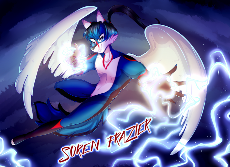 A digital badge commission for Soren who has been so friendly and awesome to work with! I'm so blown by the amount of friendly people I met at FWA. Its so awesome and all of the fursona designs are so unique and different. I've never been commissioned to draw lightening before and I very rarely get to draw wings so I was a little worried at first but this piece came to me so naturally and quickly. I'm so pleasantly surprised at how fast I was able to work on it! All the pieces just fell into place.
