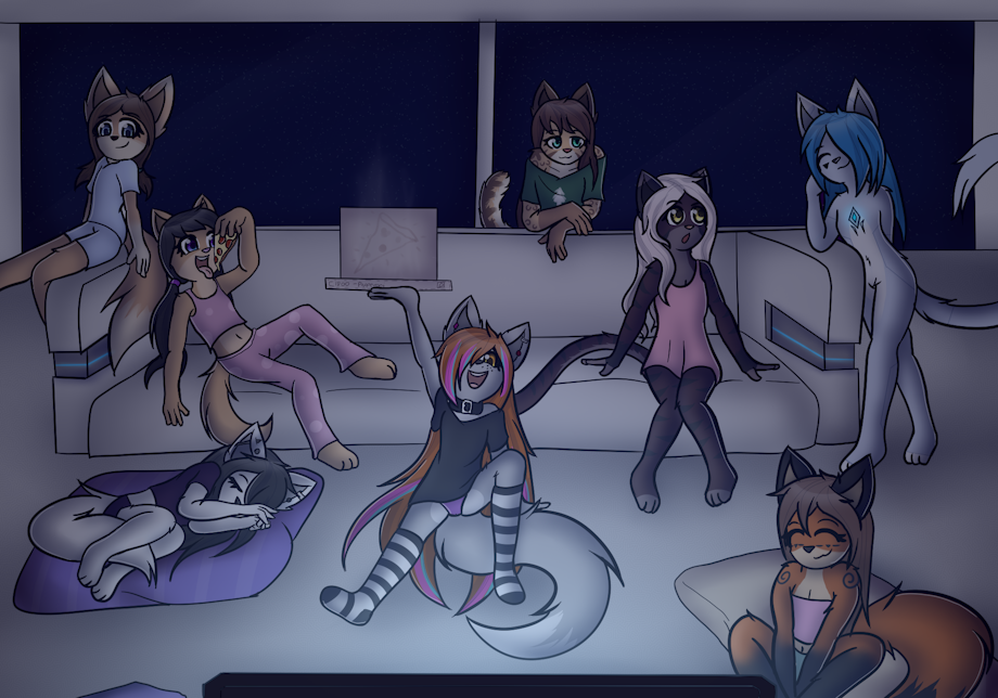 All the girls (and guy) met up at Kayla's place, to have some fun watching movies and eating pizza. Such an amazing night! ...They probably haven't realized Akio ain't a girl yet.