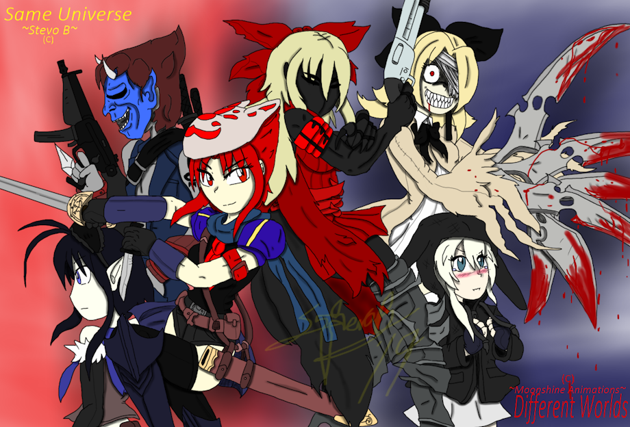 Ft. His characters on Right; Reznya, Cecilia, and Potato
