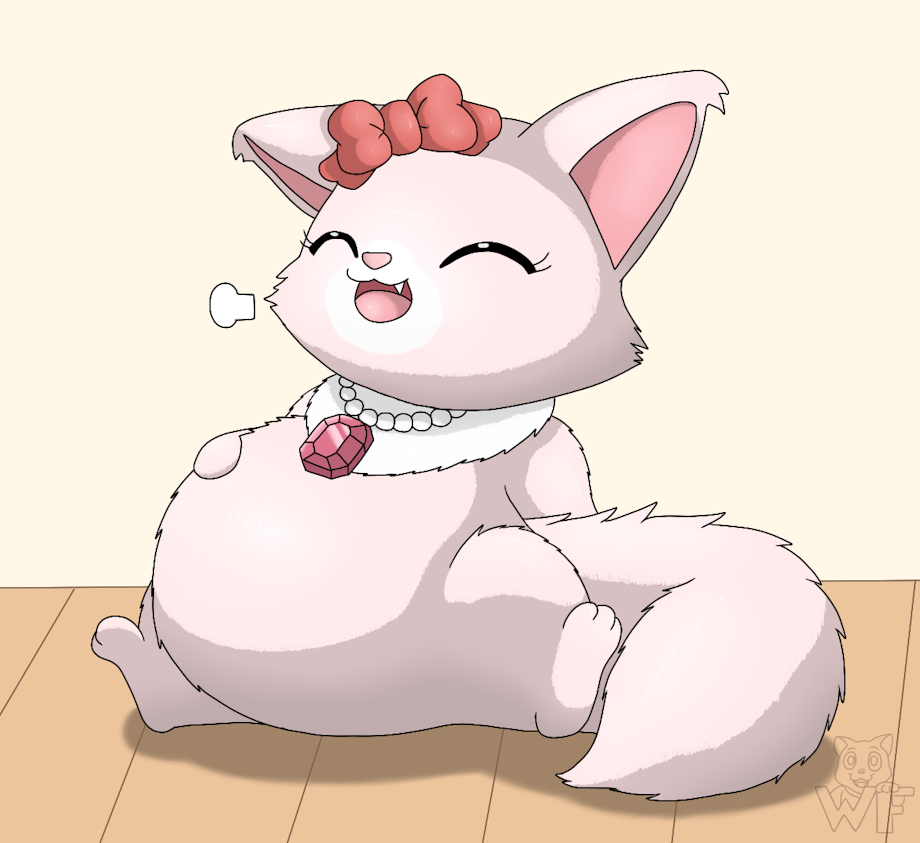 It's a cute pink kitty that eats people! It's Garnet from Jewel Pet and she's just adorable. And figured she would look even cuter with a full tummy. So here she is, satisfied. Up to you who she ate. Or maybe she just ate a lot of food if that's not your thing. Anyway I hope you all enjoy!
