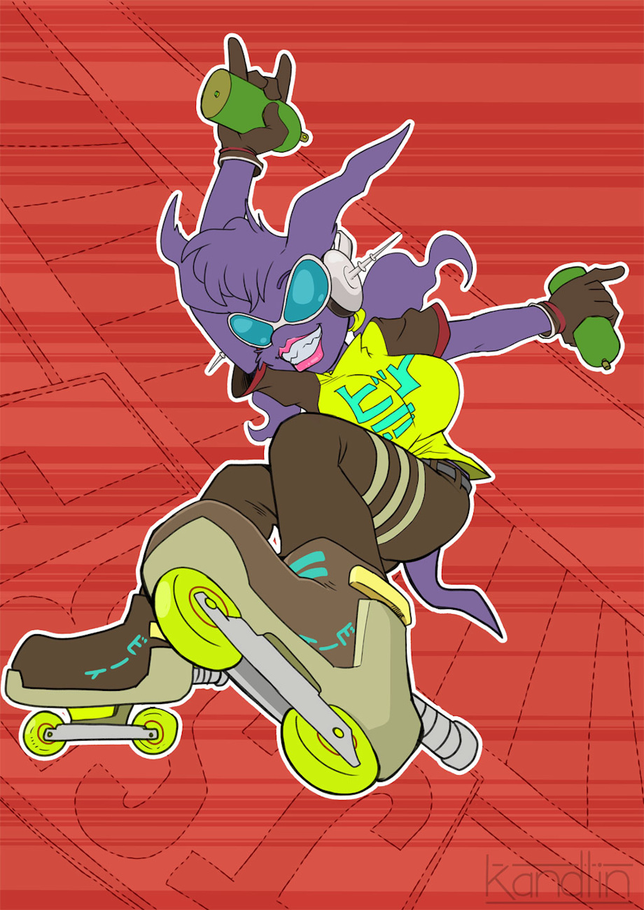 Sketch Stream Commission for Filflat of his Ferby, decked out as a player from the Jet Set Radio Future game.
