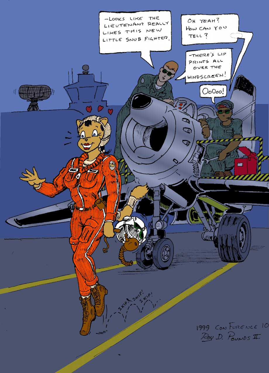 Believe it or not, Tali DOES do things besides make out with other femmes. Here she is doing some flight testing on an advanced snub fighter design...