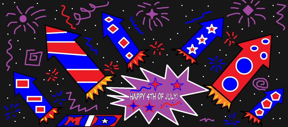 Happy 4th of July 2019, here's a graffiti of a huge firework display of red, white, and blue with purple.