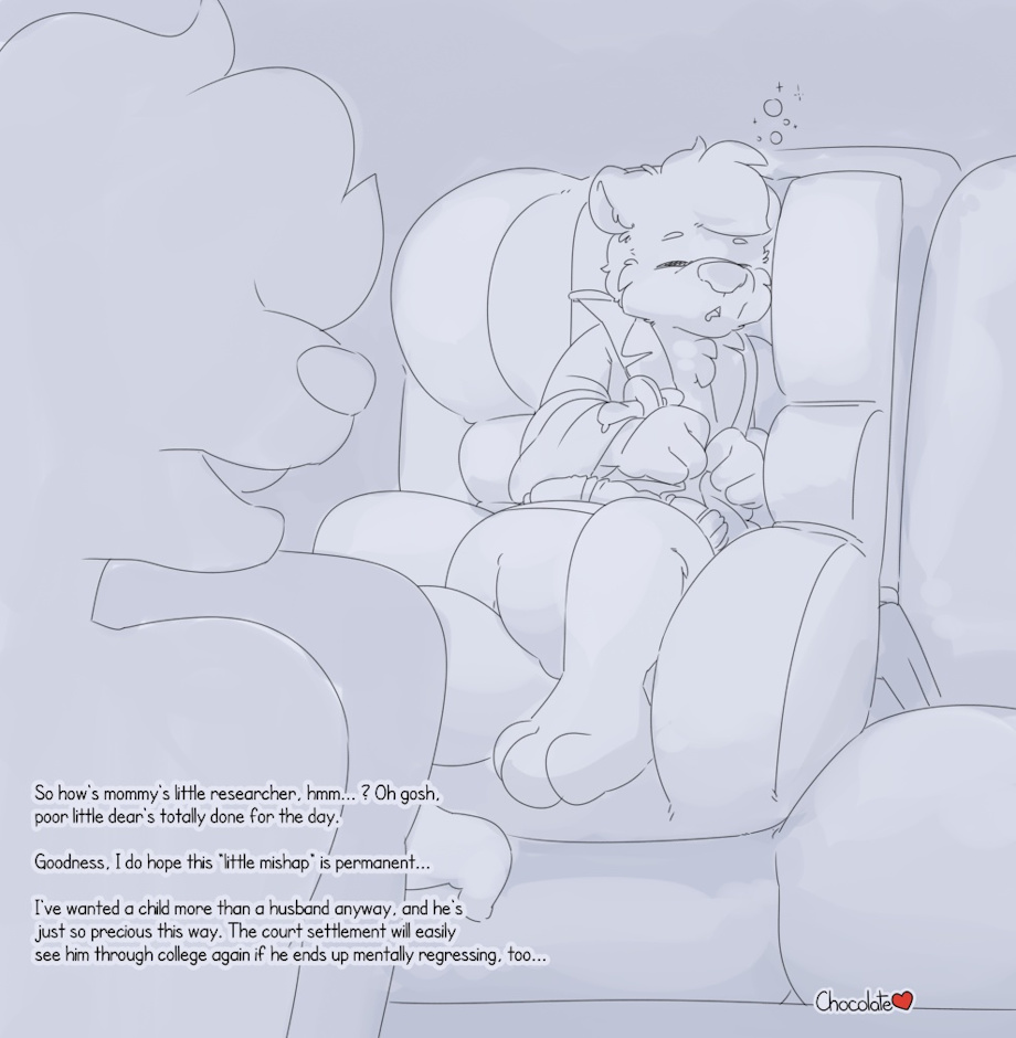 The regressed employee finally gets to go home after a long day at work, his wife-turned-mommy picking him up since he's in no state to be driving.