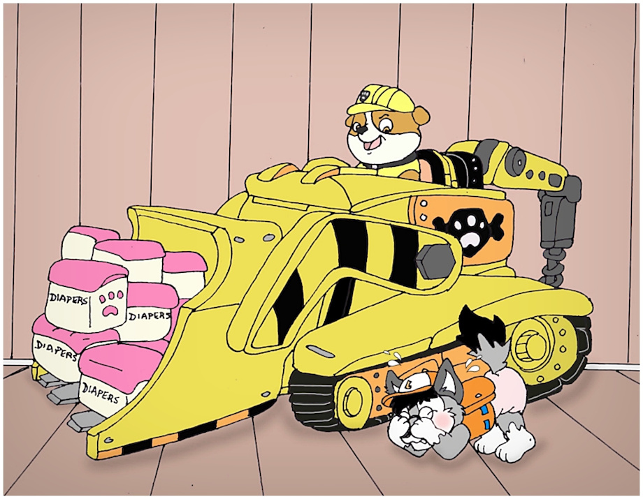 The title says it all... what else can be said about two cute puppies who after a long day of adventure felt asleep on the soft ground, safely protected in their double diapers and adorable little sleepers ?