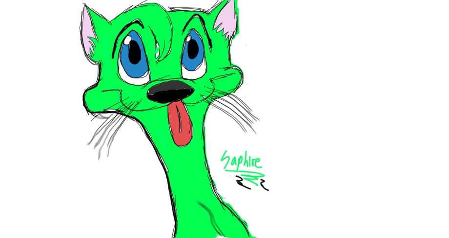 A silly green otter named Neon poking her tongue out at the internet. Will be making a character ref for her soon :3