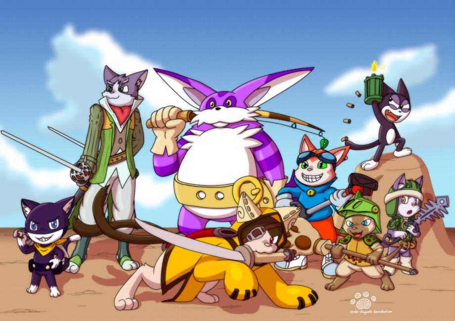 Morgana (c) Persona 5 Nyanta (c) Log Horizon Jubei (c) Blazblue Blinx (c) Blinx the cat Big (c) Sonic Felyne (c) Monster Hunter Hermit (c) .Dot Hack Kuro (c) Cyborg Cat Kuro-Chan