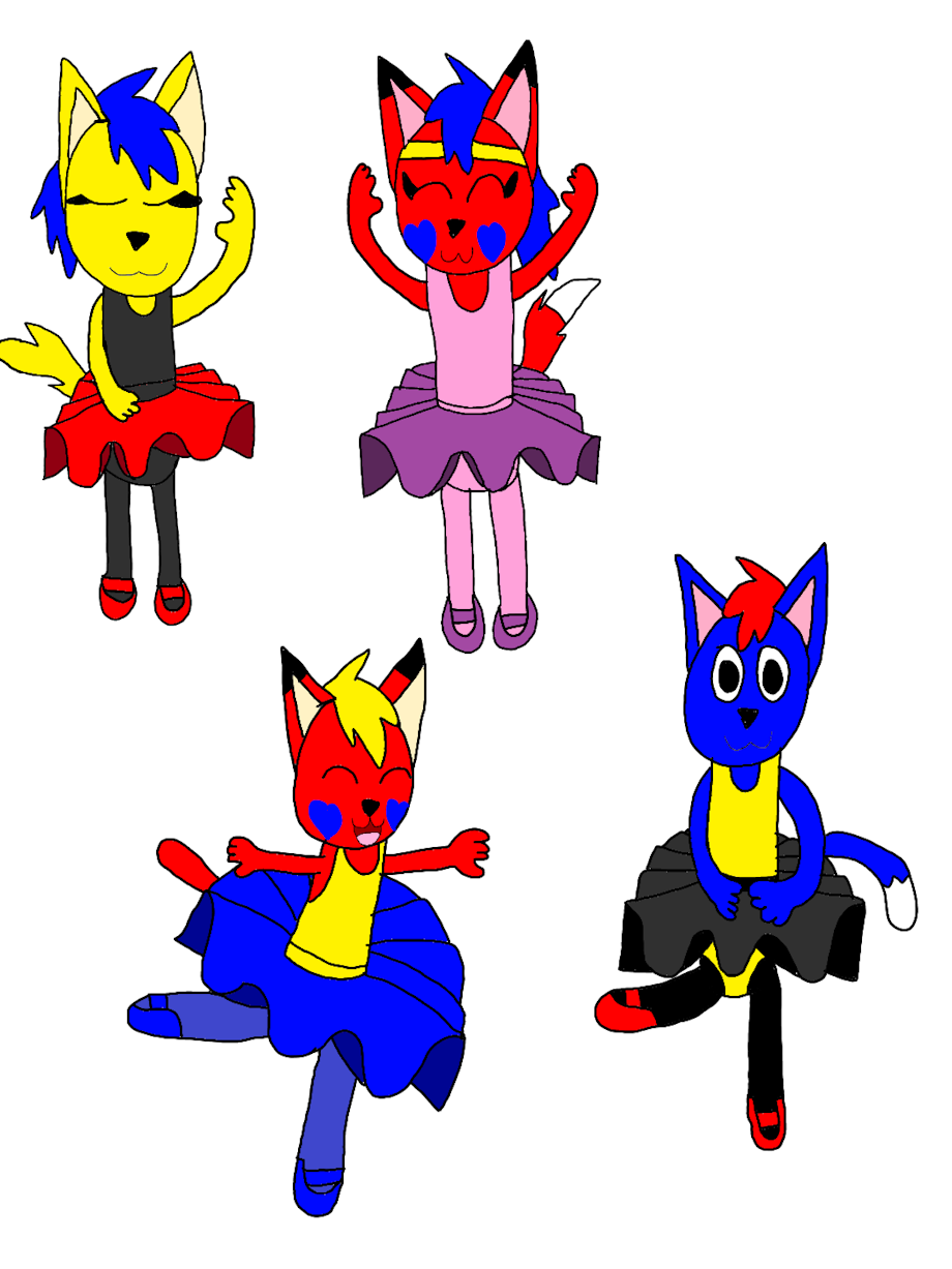 Here's a drawing of Lighting, Speedy, Zack and Penny and they're Ballerinas and they all danced together. They once saw there dad as a Ballerina and danced with there mom. So Lighting and Penny got there Tutus on and gave Zack and Speedy one. They all danced and had fun.