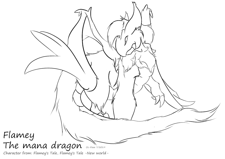 This is the B/W version of the new image for Flamey in the story "Flamey's Tale and Flamey's Tale -New world-(series)" This time around I went with a more fluffy/scruffy looking mana dragon to give him his own unique flair and to set him apart from the run of the mill look. I did leave off the back wings as some will notice (Two smaller ones) to not distract the viewer from the main image as adding those two back wings would make the image way to busy.