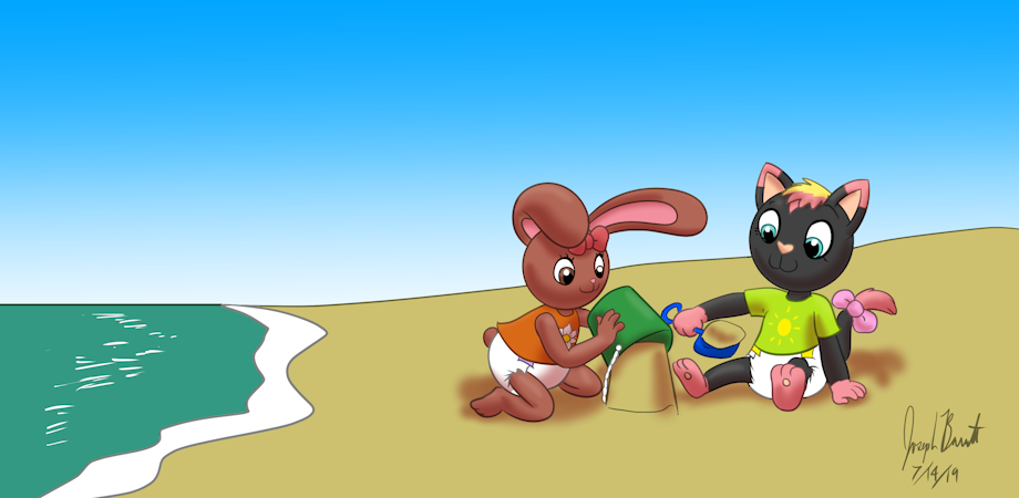 Awwwwww. Two little cuties making sandcastles. What a lovely picture.