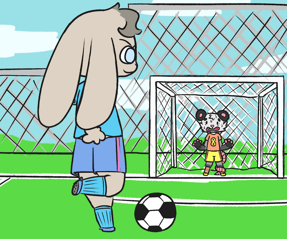 Dot gets to play with the other kids, Shes on a team with the other special kids, the Possum boy here is super super nervous, he's too terrified to do anything, but he's trying his best by being goalie